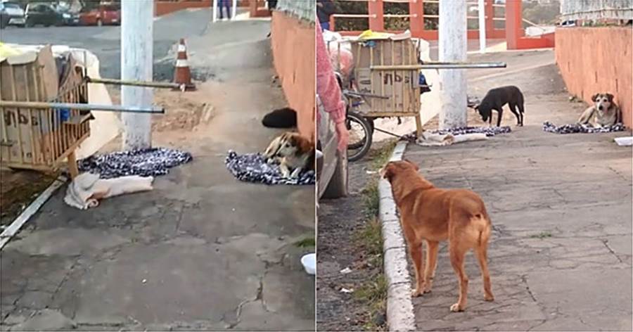 Um catador de materiais recicláveis residente em Canoenas (SC) deu entrada no hospital no início de maio por problemas respiratórios e seus quatro cães permaneceram em frente ao hospital, aguardando seu retorno.